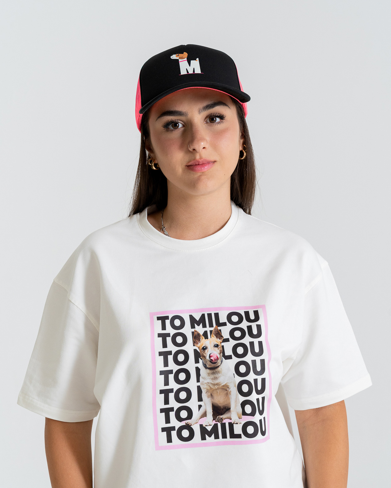 Unisex καπέλο σε μαύρο και φούξια χρώμα, με το logo tomilou επάνω!