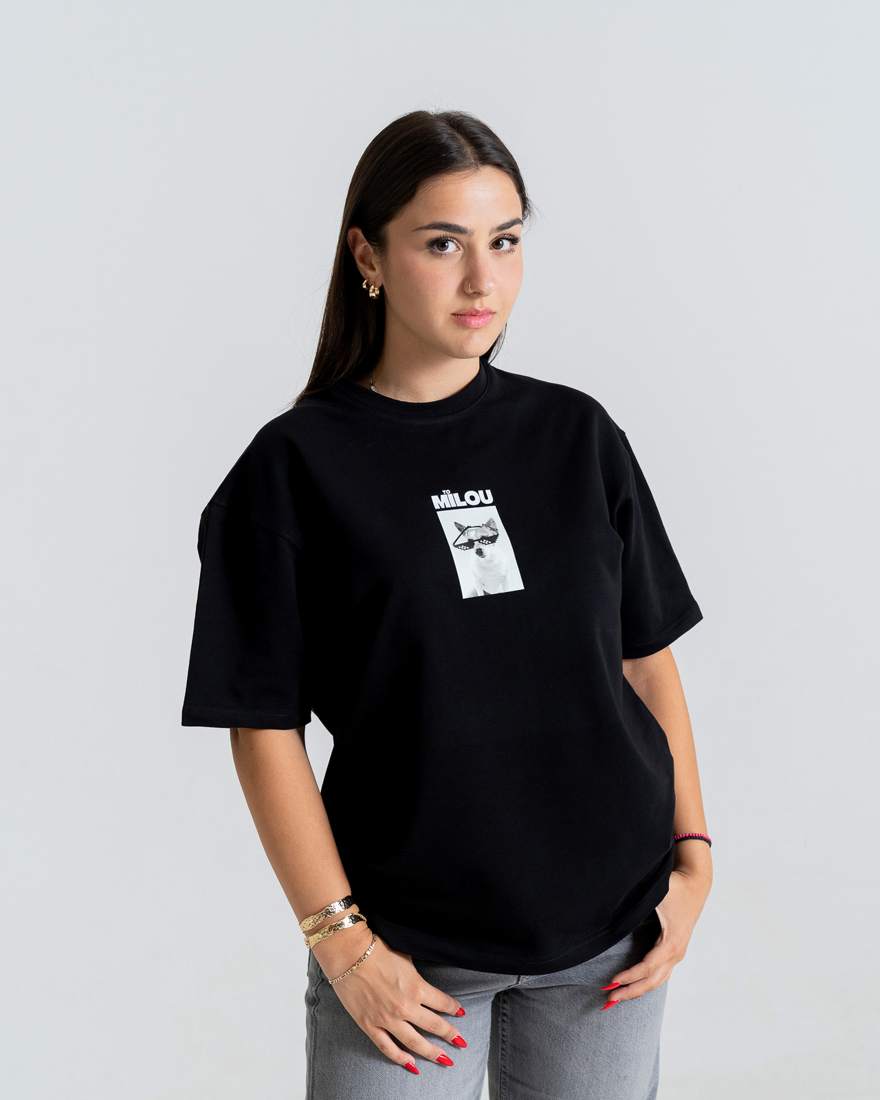 Στο μπροστινό μέρος, η Μιλού σε city-mood. Στο πίσω μέρος, ένα bold στοιχείο που ολοκληρώνει το look με χαρακτήρα και άποψη.